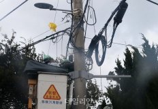 제11호 태풍 '힌남노'가 제주를 할퀴고 지나간 6일 오전 정전 피해가 발생한 제주시 한림읍 지역의 한 전봇대에서 전력 당국이 정전피해를 복구하고 있다. ⓒ연합뉴스 '제11호 태풍' 힌남노가 한반도를 휩쓸고 지나가면서 전국 곳곳에 정전 피해가 속출한 것으로...