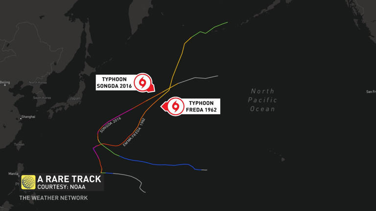 Only a handful of historical typhoons make the trek north of 40 degrees latitude and hold onto tropical characteristics in the western Pacific basin.