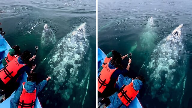 Magical encounter with dancing grey whales in Baja, California