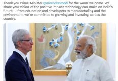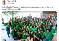 팀 쿡 애플 최고경영자(CEO)의 트위터 장면. 연합뉴스 애플이 인도 공략에 공을 들이고 있다. 뭄바이와 뉴델리에 잇따라 첫 오프라인 매장을 개설하고 팀 쿡 최고경영자(CEO)가 거의 7년 만에 개장식에 직접 참석했다. 쿡 CEO는 나렌드라 모디 총리를 예방하는 등...
