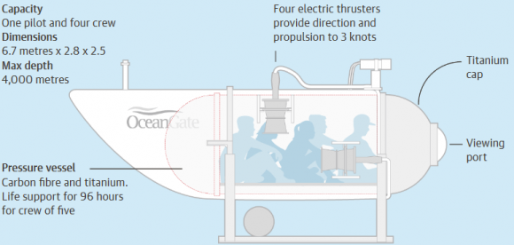 오션게이트가 올린 잠수정 소개 동영상에는 5인이 타기에는 비좁은 내부 크기가 눈에 띈다. 외부에서 볼트로 밀봉하는 구조이기 때문에 문제 발생 시 자력으로 탈출할 방법도 없어서 애초에 이런 사고를 염두에 두지 않고 설계한 것으로 풀이된다.