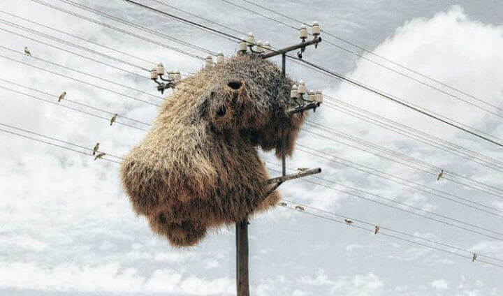 이 거대한 둥지는, 집단베짜기새 (Social Weaver Birds)가 살고 있으며 뛰어난 유지/보수 실력을 자랑합니다. 이러한 특성은 이들의 둥지를 100년 동안 지속 될 수 있는 이유를 설명합니다.