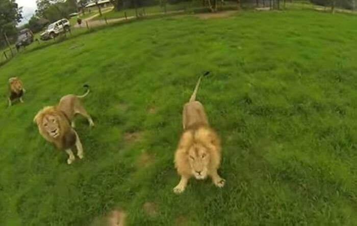 사자는 무단 침입자를 용납하지 않으며, 그 중 한마리는 도망치기 직전의 드론을 격추시키려 했습니다.