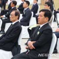 심재철(오른쪽) 미래통합당 대표 권한대행 등이 19일 서울 강북구 국립4.19민주묘지에서 열린 제60주년 4.19혁명 기념식에 참석하고 있다. 2020.04.19. dahora83@newsis.com