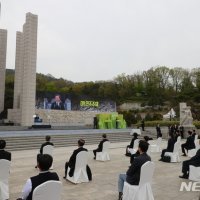 기자 = 문재인 대통령과 김정숙 여사가 19일 서울 강북구 국립4.19민주묘지에서 열린 제60주년 4.19혁명 기념식에 참석해 기념사를 하고 있다. 2020.04.19. dahora83@newsis...