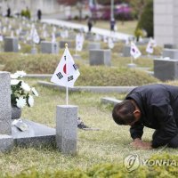(서울=연합뉴스) 윤동진 기자 = 4.19혁명 60 주년인 19일 서울 국립 4.19 민주묘지에서 시민이 희생자의 묘에서 참배하고 있다. 2020.4.19 mon@yna.co.kr <저작권자(c) 연합...
