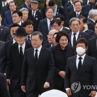 문재인 대통령과 부인 김정숙 여사가 19일 오전 서울 강북구 국립 4.19 민주묘지에서 열린 제60주년 4.19혁명 기념식에 참석하고 있다. 2020.4.19 cityboy@yna.co.kr...