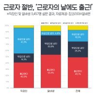 직장인 40.9%, 알바생 53.4%로 알바생이 약 12%p 가량 높게 나타났다. 하지만 ‘근로자의 날에 쉰다’고 답한 경우에도 고용형태에 따라 그 내용은 많이 달랐다. 직장인들의...