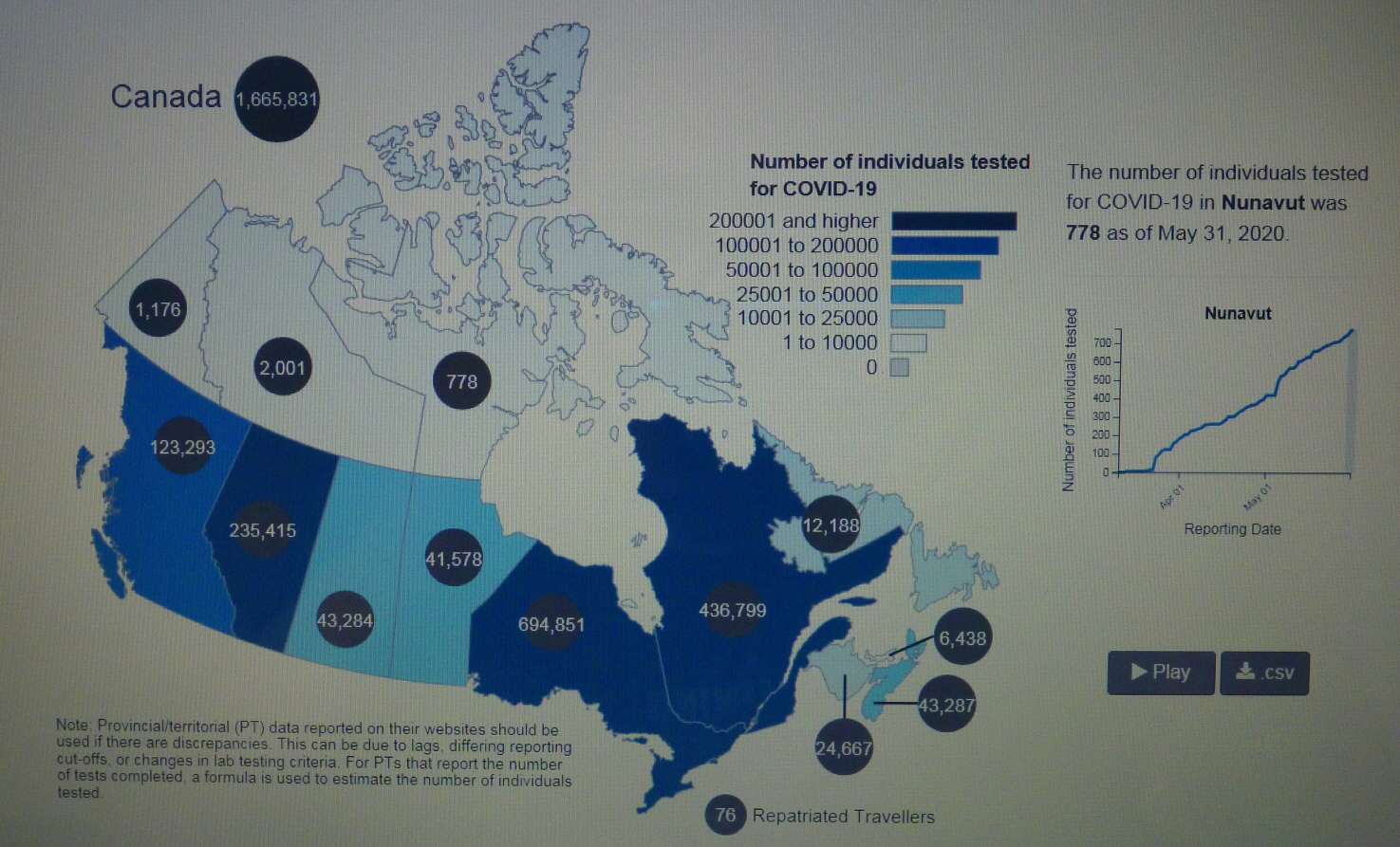 2020년 5월 12일(화) 16:26 현재 COVID-19 Pendemic으로 인한 CANADA의 사망자가 5,169명을 기록하고 있다.