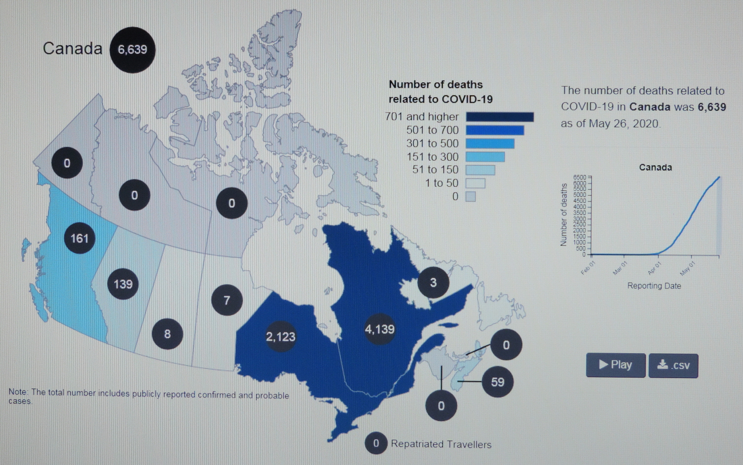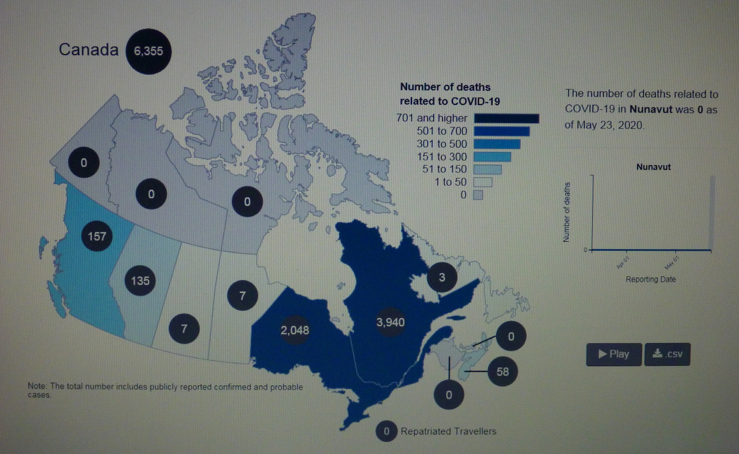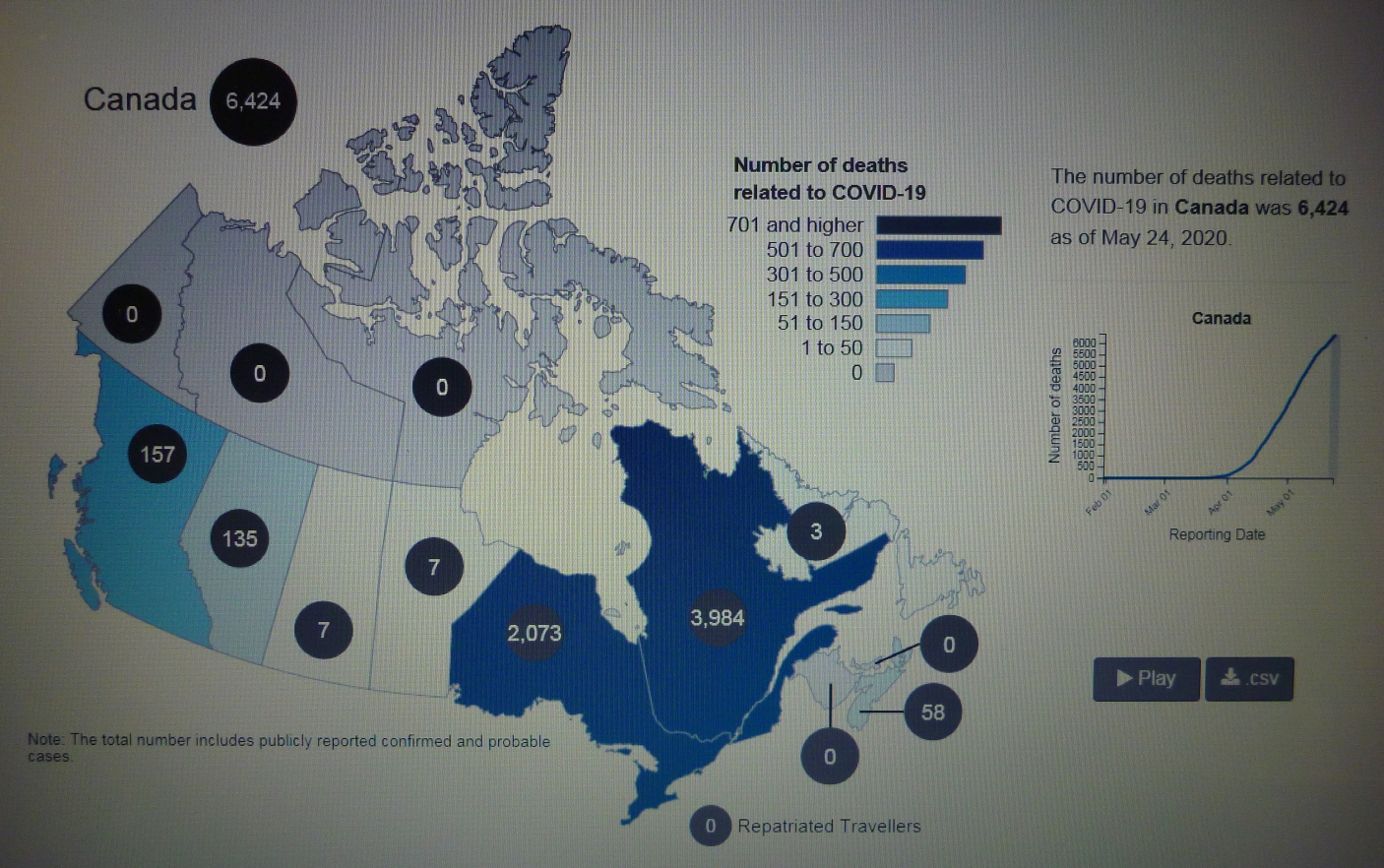 2020년 5월 20일(수) 19:00 현재 COVID-19 Pendemic으로 인한 CANADA의 사망자가 6,030명을 기록하고 있다.