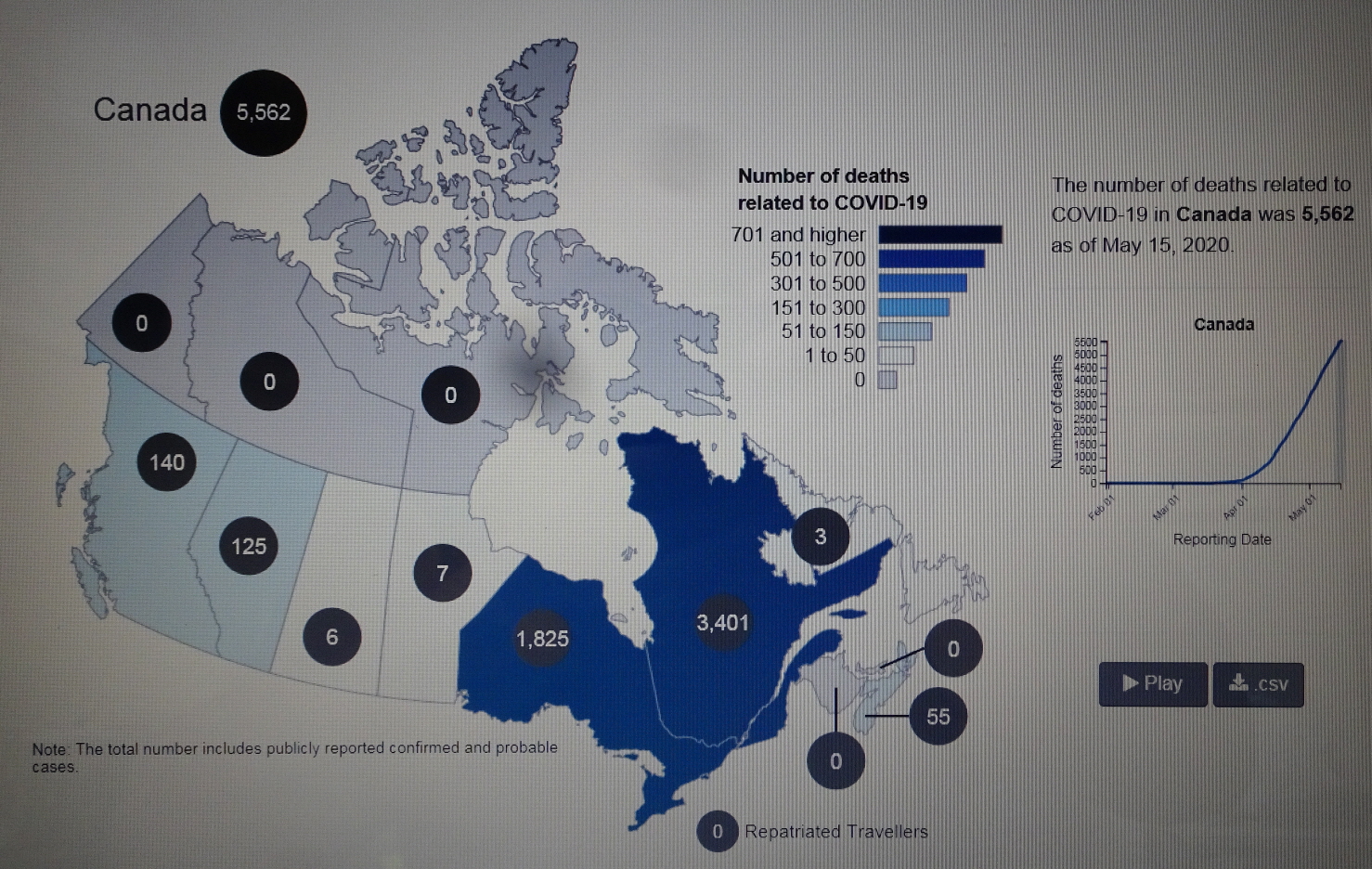 ■ 20200515 FRI 16:01 기준 COVID-19 in CANADA/5,562명 사망(5월 14일 대비 89명 증가)
