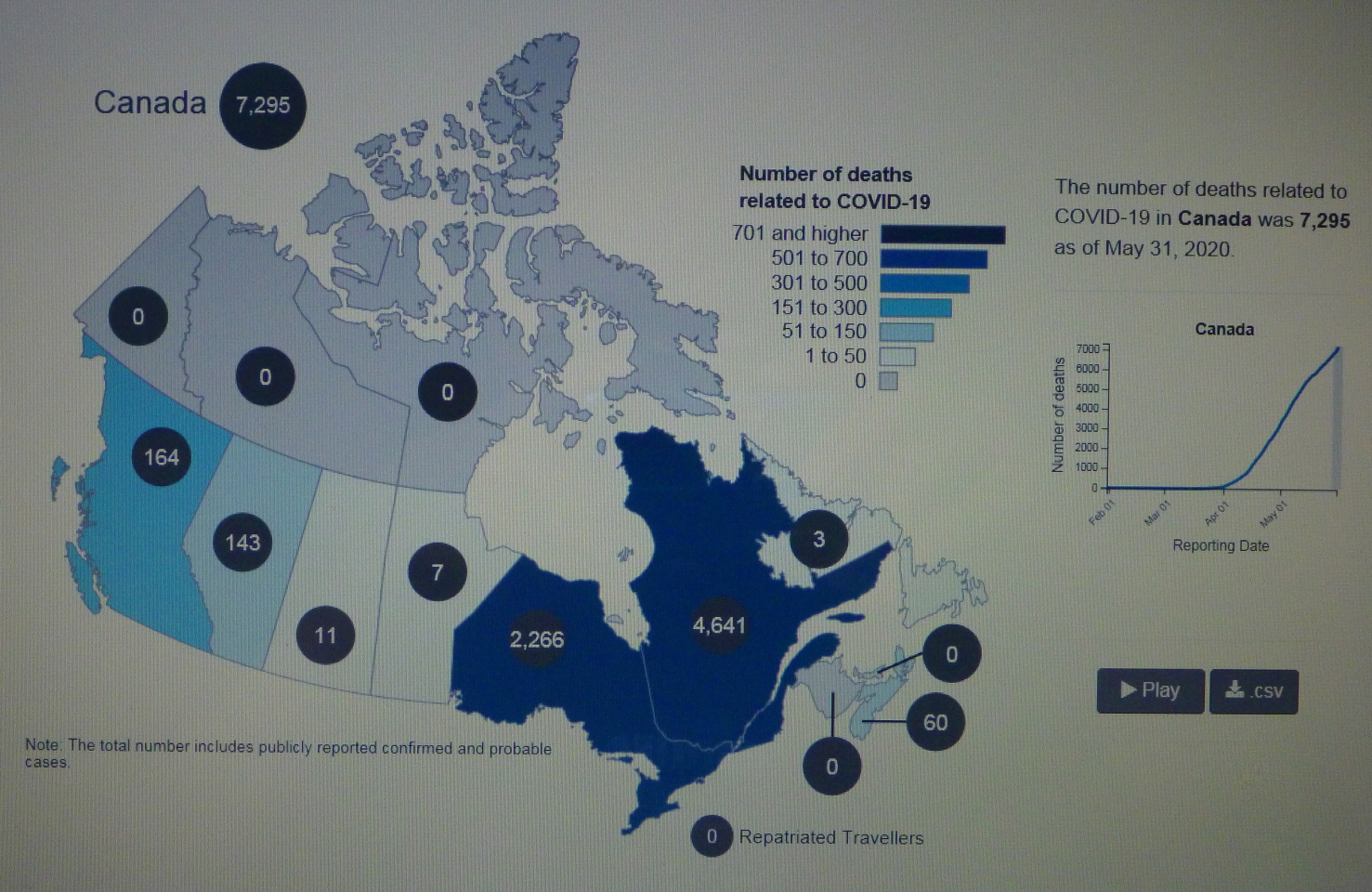 ■ 20200531 SUN 19:30 기준 COVID-19 in CANADA/사망자 7,295명(5월 30일 대비 222명 증가)