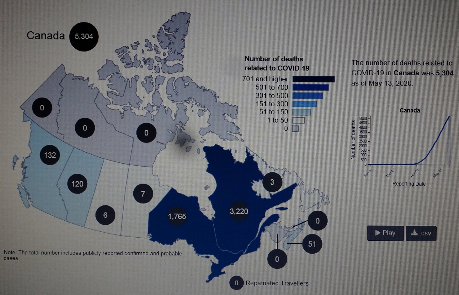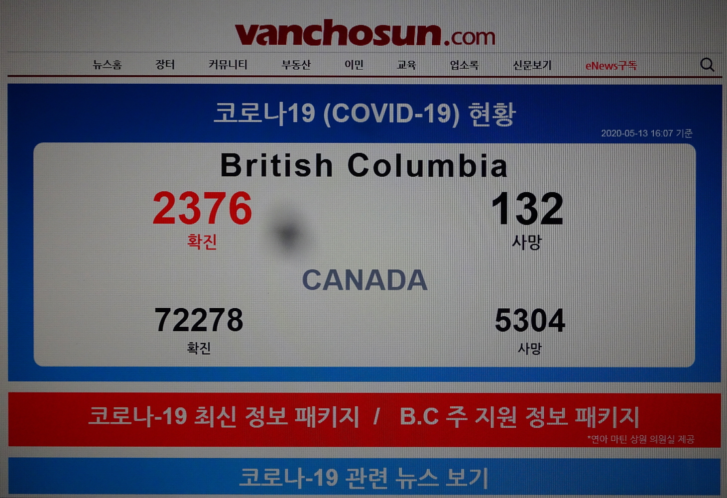 ■ 20200513 WED 16:07 기준 COVID-19 in CANADA/5,304명 사망(5월 12일 대비 135명 증가)