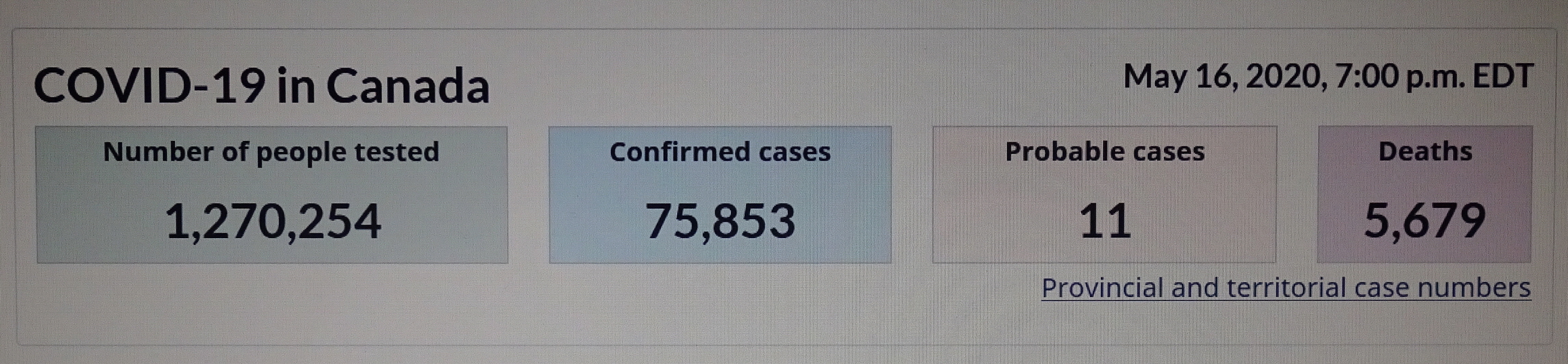 ■ 20200514 THU 16:41 기준 COVID-19 in CANADA/5,472명 사망(5월 13일 대비 168명 증가)