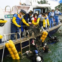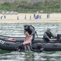 [홍춘봉 기자(=동해)(casinohong@naver.com)] ▲28일 해군 1함대가 바다의 날을 앞두고 동해시 인근 해상에서 1함대 구조작전중대(SSU) 잠수요원들이 수중 쓰레기를 건져...