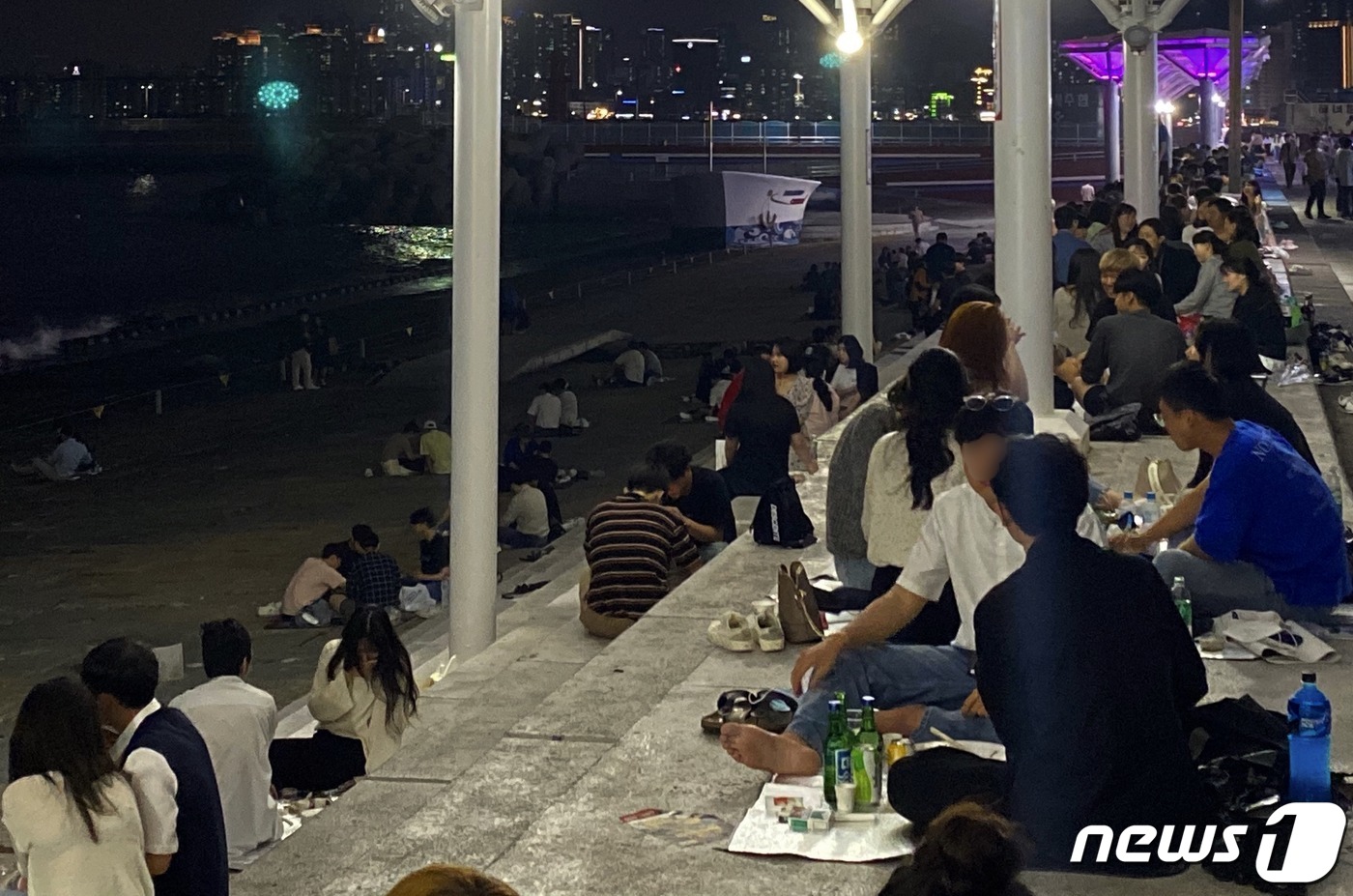 광안대교를 마주한 수영구 민락동 수변공원 일대 100m는 연인, 가족 등 다양한 모습의 방문객들이 일찌감치 자리를 잡고 술잔을 기울였다.