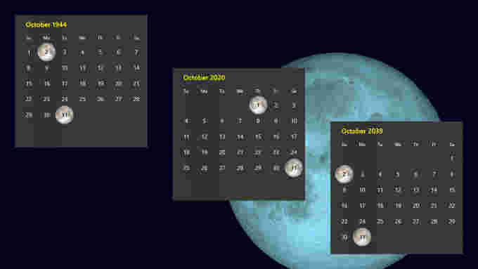 Halloween Full Moons are seen in 1944, 2020 and 2039. Background image credit: NASA's Scientific Visualization Studio.