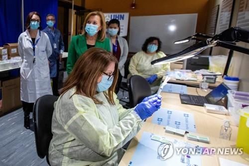 코로나19 백신을 살펴보는 캐나다 의료진 [로이터=연합뉴스]