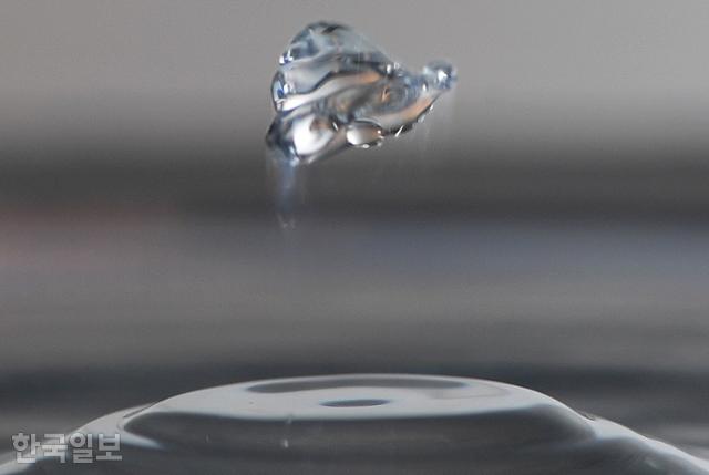 자유낙하한 물방울이 물의 표면과 충돌하면서 '푸들' 강아지를 연상시키는 형태를 띠고 있다. 서재훈 기자