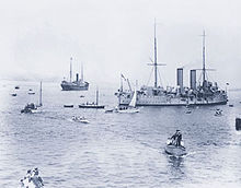 While American residents of British Columbia celebrated the United States' purchase of Alaska in 1867, having American territory to their north and south caused British residents' fears for the future of their colony to grow.[43] Alaska was part of American Secretary of State William H. Seward's plan to incorporate the entire northwest Pacific Coast, chiefly for the long-term commercial advantages to the United States in terms of Pacific trade. Seward believed that the people in British Columbia wanted annexation and that Britain would accept this in exchange for the Alabama claims. In the event, Seward dropped the idea of exchange and accepted an arbitration plan that settled the Alabama claims for cash.[44] When a false report circulated in April, soon after the Alaska news, that the British government was considering settling the claims by ceding the colony, a substantial annexation movement appeared supported by many residents and three of the colony's six newspapers.[43]