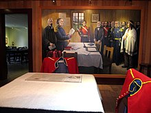 Depiction of the proclamation establishing the colony of British Columbia by Governor James Douglas at Fort Langley National Historic Site