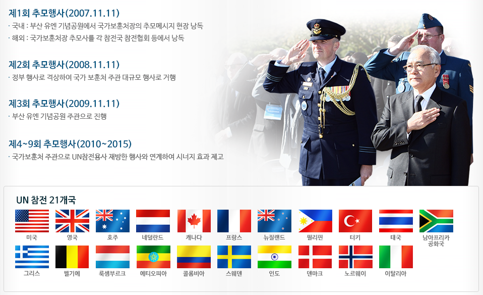 2007년 캐나다의 빈센트 커트니씨(6·25전쟁 참전용사)가 개인 발의로 한국전에 참전했던 전사자들이 안장되어 있는 부산 유엔 기념공원을 향해 부산 현지 시간에 맞춰 동시묵념 및 추모행사를 제안했습니다.