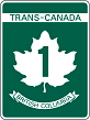 The Trans-Canada Highway (French: Route Transcanadienne; abbreviated as the TCH or T-Can) is a transcontinental federal–provincial highway system that travels through all ten provinces of Canada, from the Pacific Ocean on the west coast to the Atlantic Ocean on the east coast. The main route spans 7,476 km (4,645 mi) across the country, one of the longest routes of its type in the world.[4] The highway system is recognizable by its distinctive white-on-green maple leaf route markers, although there are small variations in the markers in some provinces.