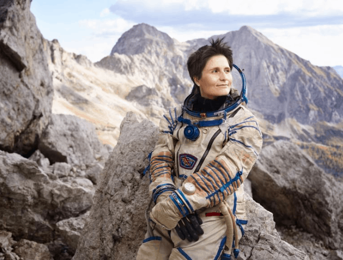 Italian astronaut Samantha Cristoforetti poses for the camera. With a whopping 199 days, she holds the record for the second-longest uninterrupted spaceflight by a woman.