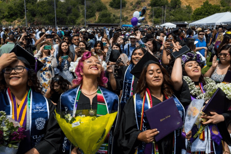 In this picture, members of the Palmer Society, a campus women's organization, are celebrating their graduation from Whittier College in California.