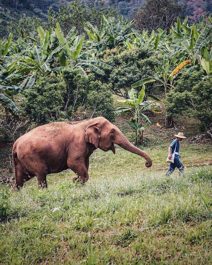 The astonishing country of Thailand is well-known for its elephant population. Some regions of this place have elephant sanctuaries where you can stand close to one. Thanks to Jacintha Verdegaal, we get to see one from a very short distance.