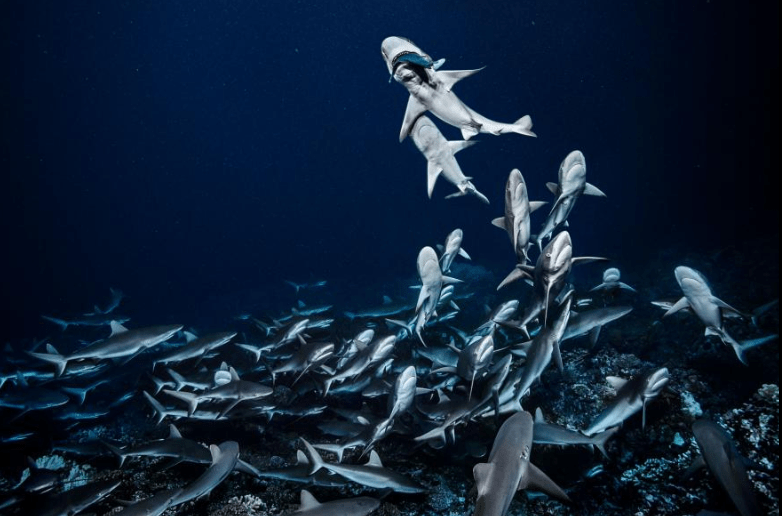 This amazing photo captured 700 gray reef sharks hunting as a pack at night in French Polynesia. They don't seem so scary in the picture, do they?