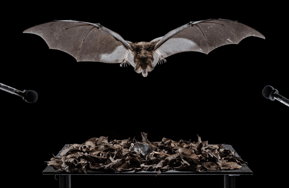 This picture shows a spectral bat targeting a mouse at a laboratory, as these bats have never been seen taking prey in the wild.