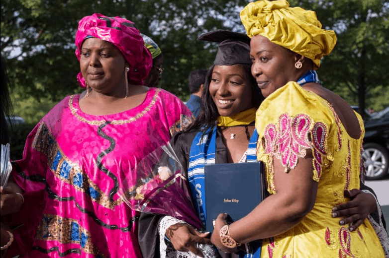 Nanmanian Camara is the first woman in her family to graduate from college and celebrates with her Guinean aunt and mother.