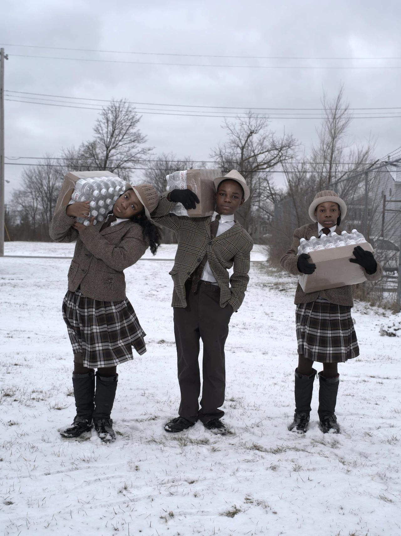 These children, who happen to be siblings, should be playing in the snow and having fun together. Instead, they have to go to the Flint Fire Station every day to pick up bottled water because the whole area where they live is contaminated.