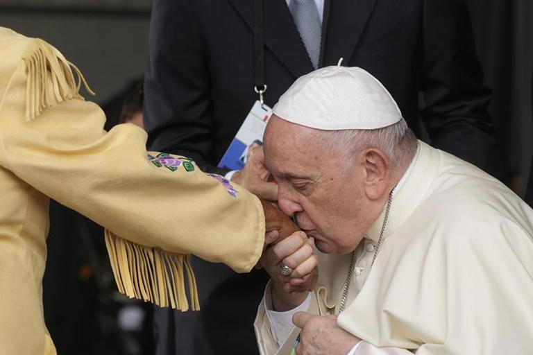 The gesture set the tone of what Francis has said is a “penitential pilgrimage” to atone for the role of Catholic missionaries in the forced assimilation of generations of Native children — a visit that has stirred mixed emotions across Canada as survivors and their families cope with the trauma of their losses and receive a long-sought papal apology.