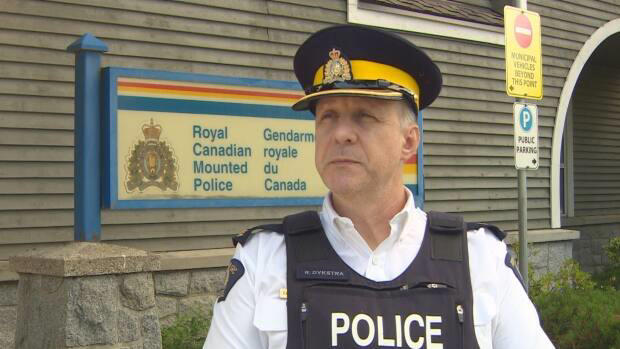 © Shawn Foss/CBCRCMP Inspector Robert Dykstra says two people were arrested in Squamish in connection with the shooting deaths of two men in Whistler Village Sunday afternoon.