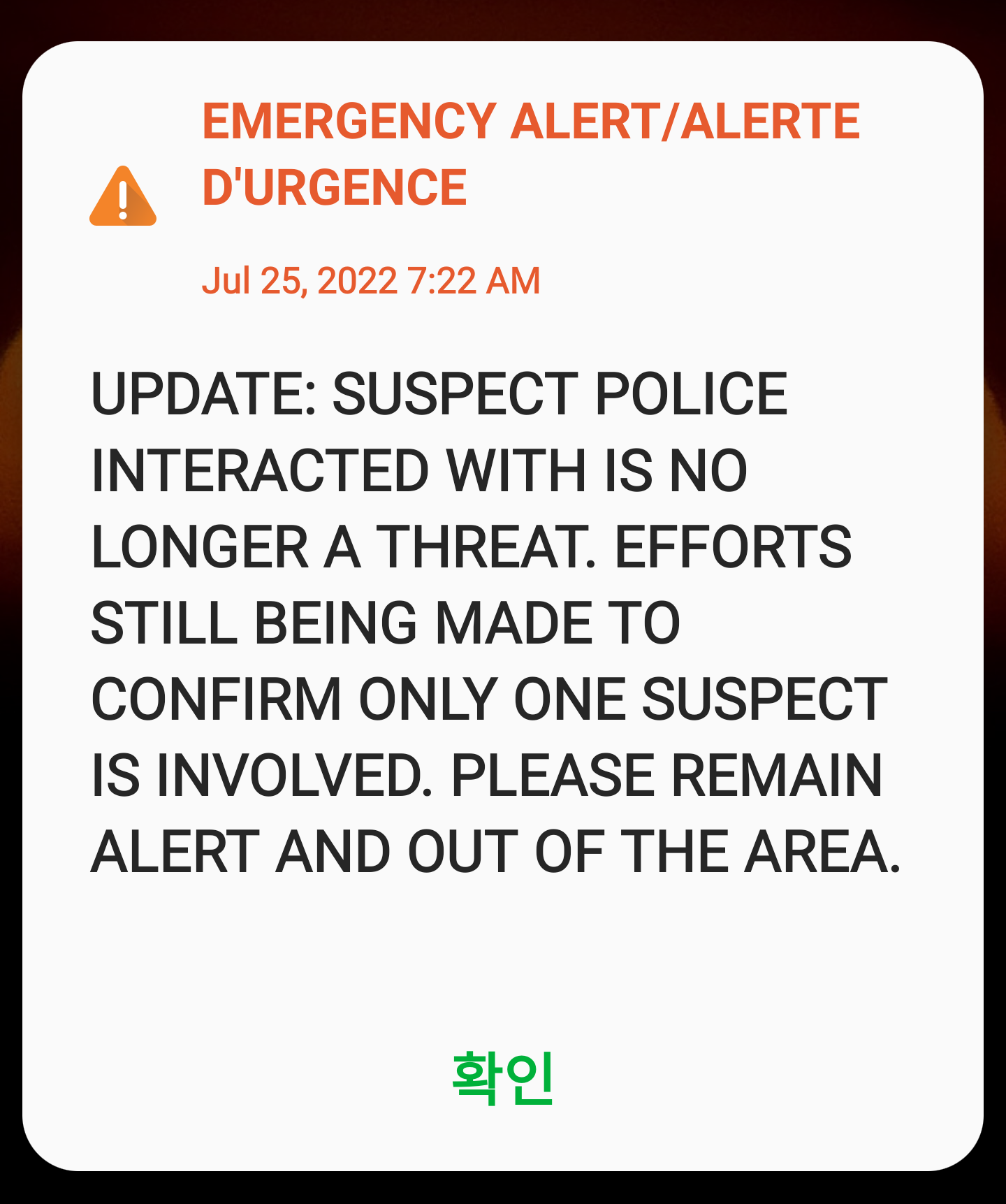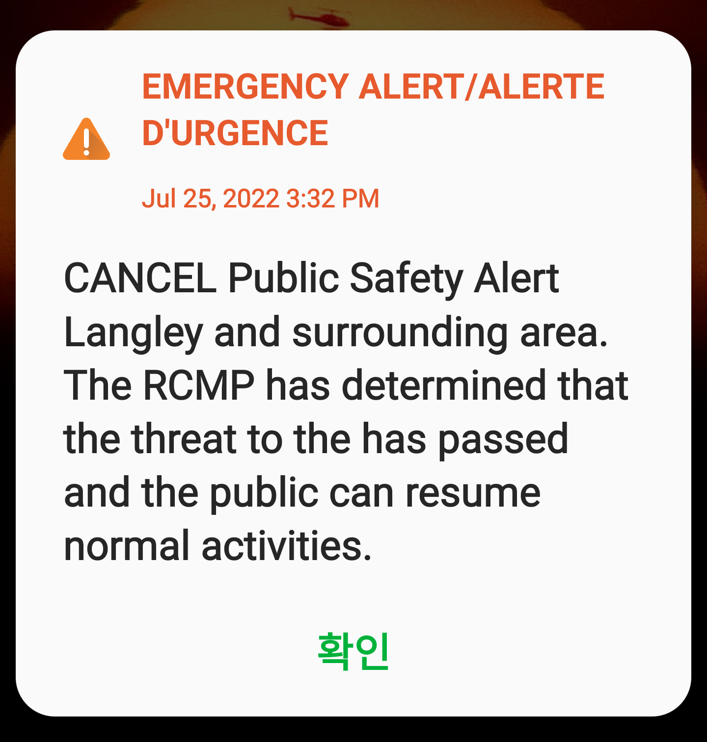 Emergency Alert to All Citizens of Greater Vancouver - Langley Shooting