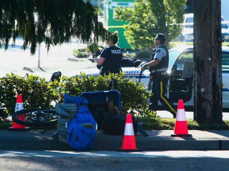 © Jesse Winter/ReutersPolice officers work at the site after authorities alerted residents of multiple shootings targeting transient victims in the Vancouver suburb of Langley, British Columbia, Canada July 25, 2022.