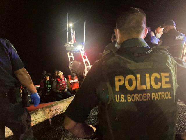 미국령 푸에르토리코 서쪽의 무인도인 모나섬 해역의 밀입국선에 타고 있다 28일 미국 해안경비대에 적발·구조된 이들이 푸에르토리코 해변에 도착하는 모습을 해안경비대원들이 지켜보고 있다. 로이터 연합뉴스