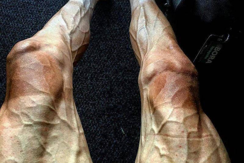 This man is an athlete recovering from the Tour de France. After the race, he snapped a picture of his veins pulsing under his skin.