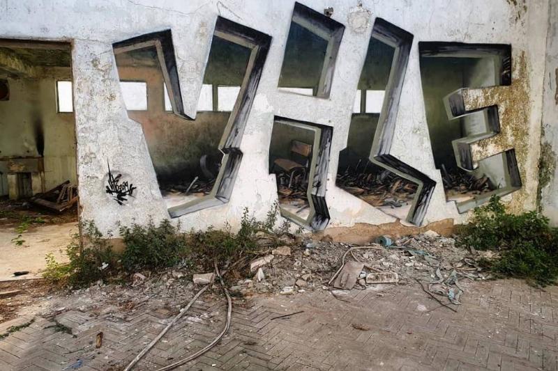 This abandoned building was the perfect white-wall canvas for a street artist who wanted to create an optical illusion.