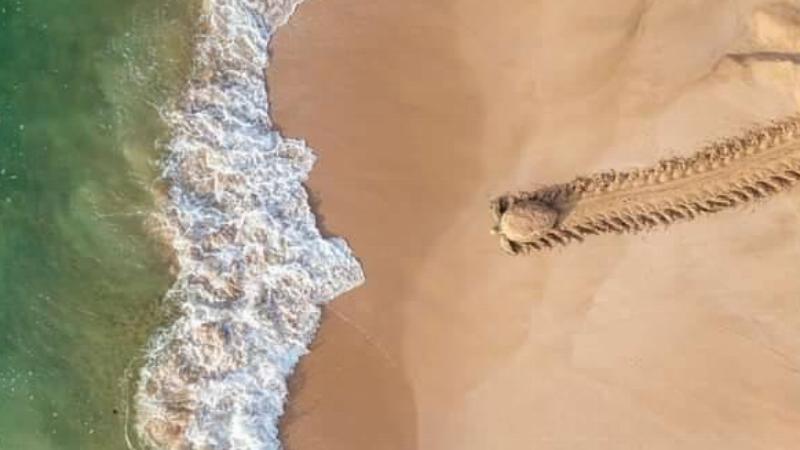 At first glance, this photo looks like a gigantic centipede has stormed the beach and is headed for the water in a weird sci-fi movie.