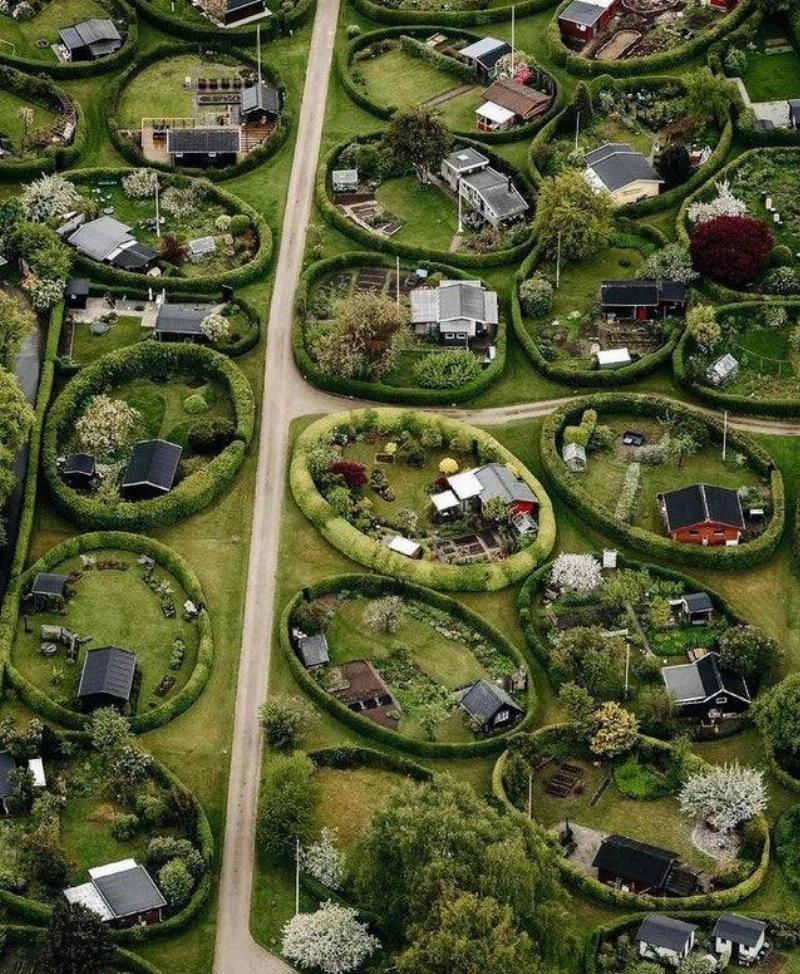 In some neighborhoods in Denmark, people have taken to using rounded hedges in order to enclose their properties and offer some privacy from neighbors.