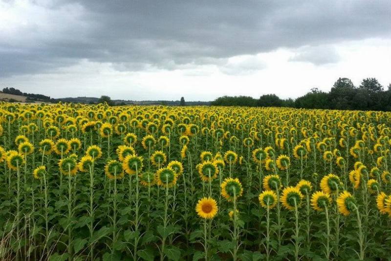 Except for this single sunflower, who decided that on this day, it would not face east.